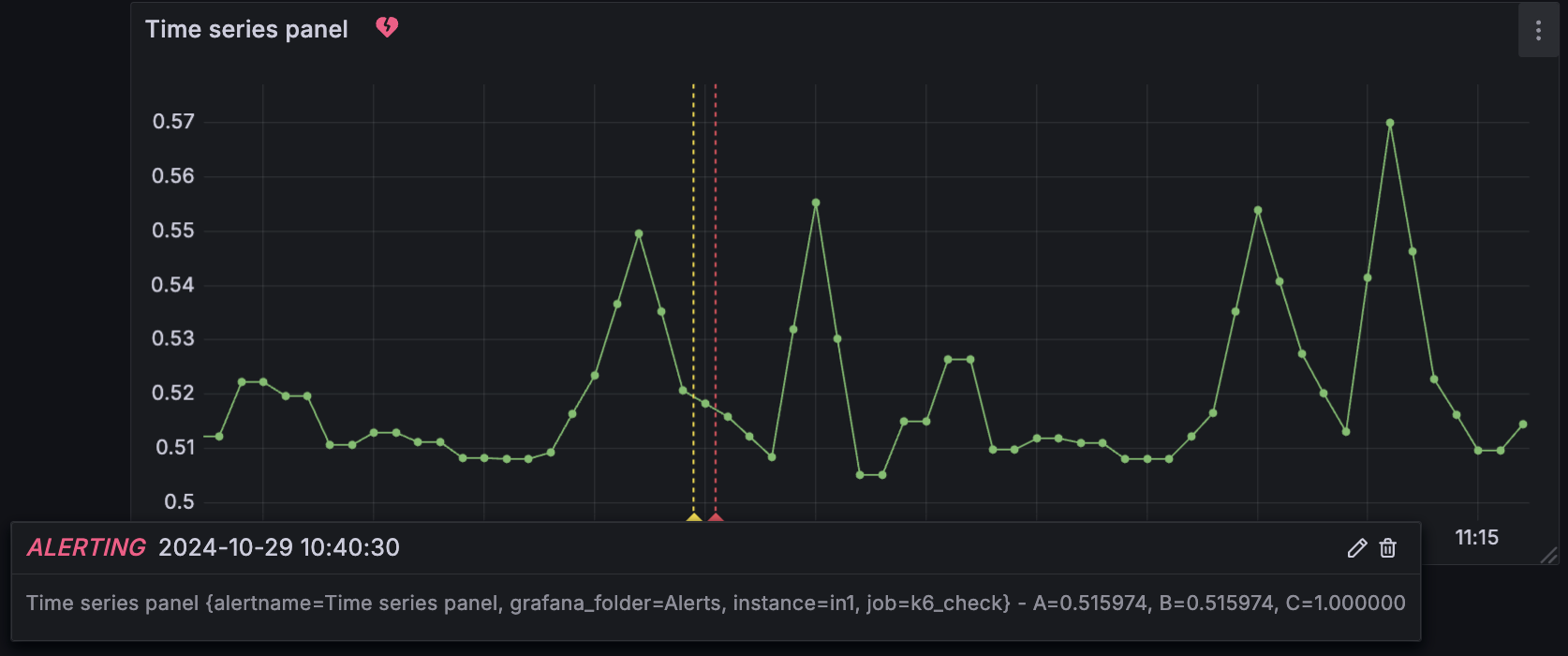 Changes to panel and alert rule queries aren’t synchronized. If you change a query, you have to update it in both the panel and the alert rule.