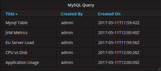 WHERE $__timeFilter(dashboard.created)Table panel results: