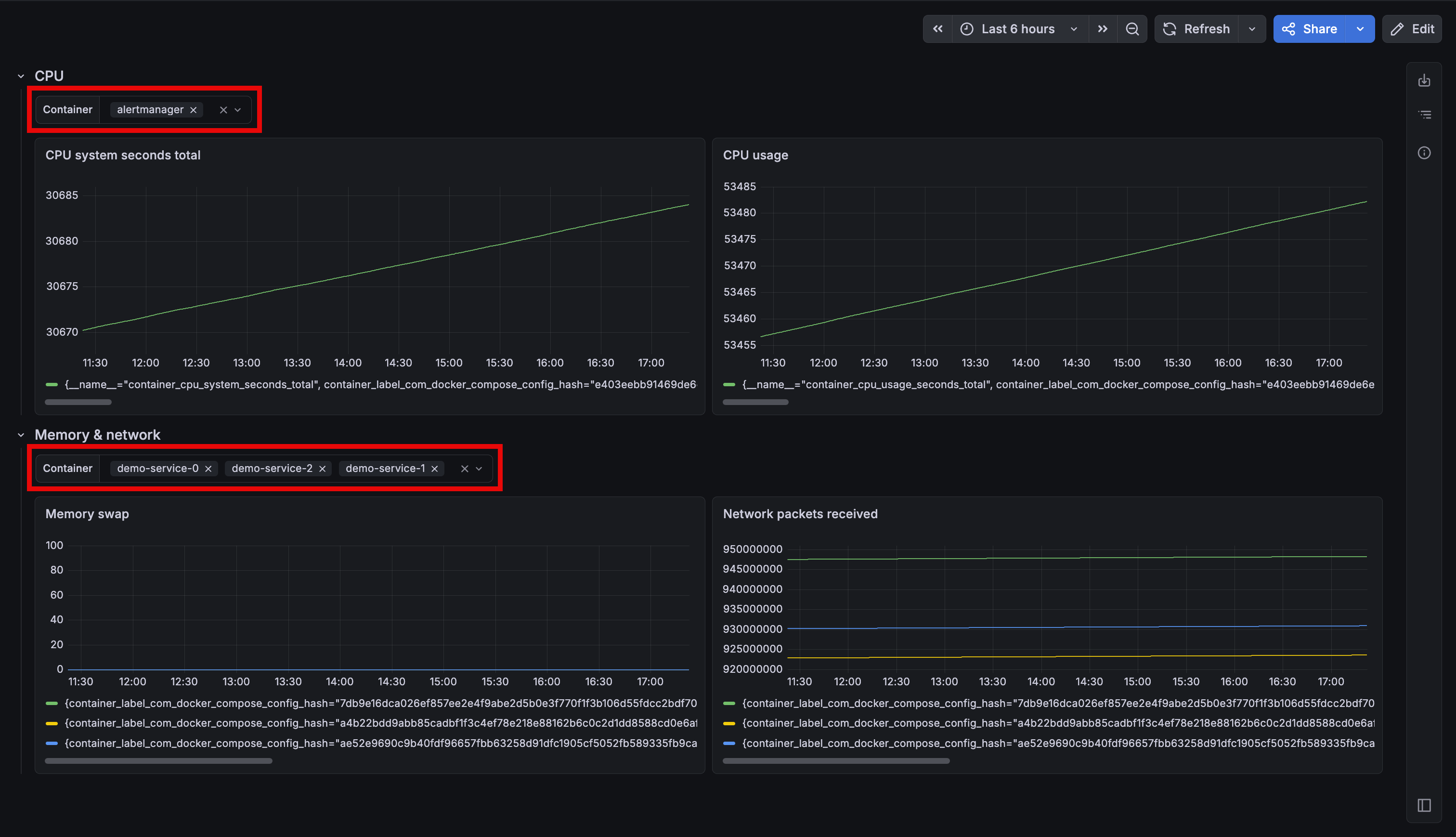 If your dashboard includes both an API gateway and a database, changing something like an $instance variable affects all panels at once. To avoid this, you might have to split up services across separate dashboards, which defeats the goal of having a unified view.